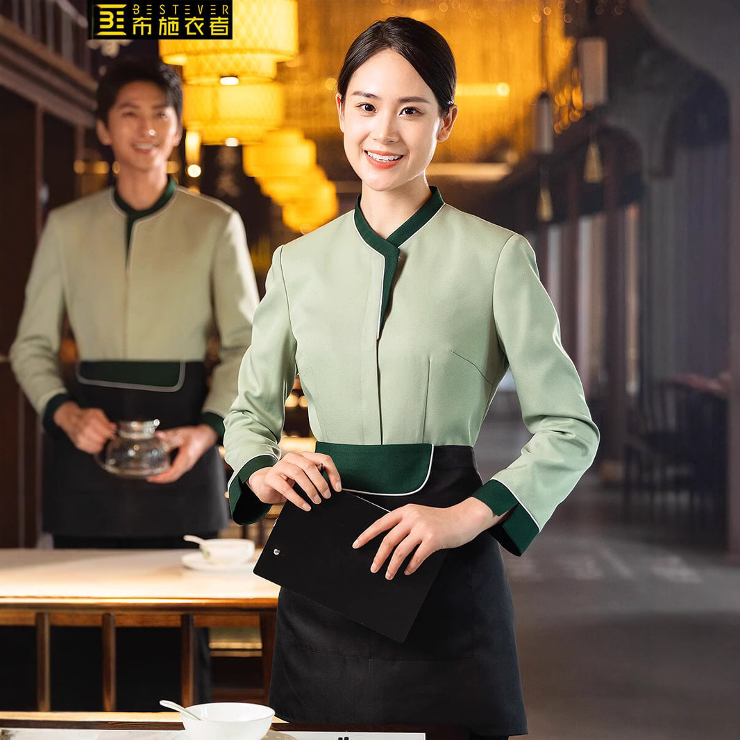 Busswoman kerah restoran Cina katering pot panas restoran hotel restoran pelayan pakaian kerja wanita musim gugur musim dingin lengan panjang