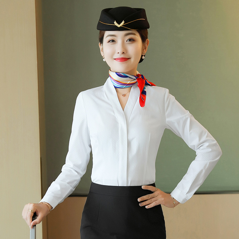 Pramugari wawancara bisnis pake Southern Airlines pramugari kemeja putih seragam wanita pakaian formal salon kecantikan kemeja lengan panjang pakaian kerja