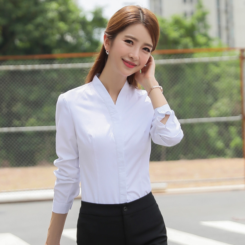 2024 musim semi baru pakaian bisnis kemeja Wanita penerbangan rel berkecepatan tinggi kemeja katun putih wanita V-neck slim fit pakaian kerja hotel