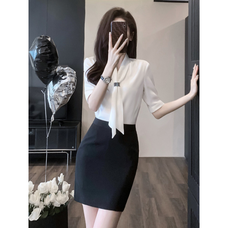 Pakaian Kerja Setelan Pakaian Wanita Elegan Profesional Musim Panas Berseragam Pramugari Musim Panas Kemeja Resepsionis Rok Pakaian Kerja ol