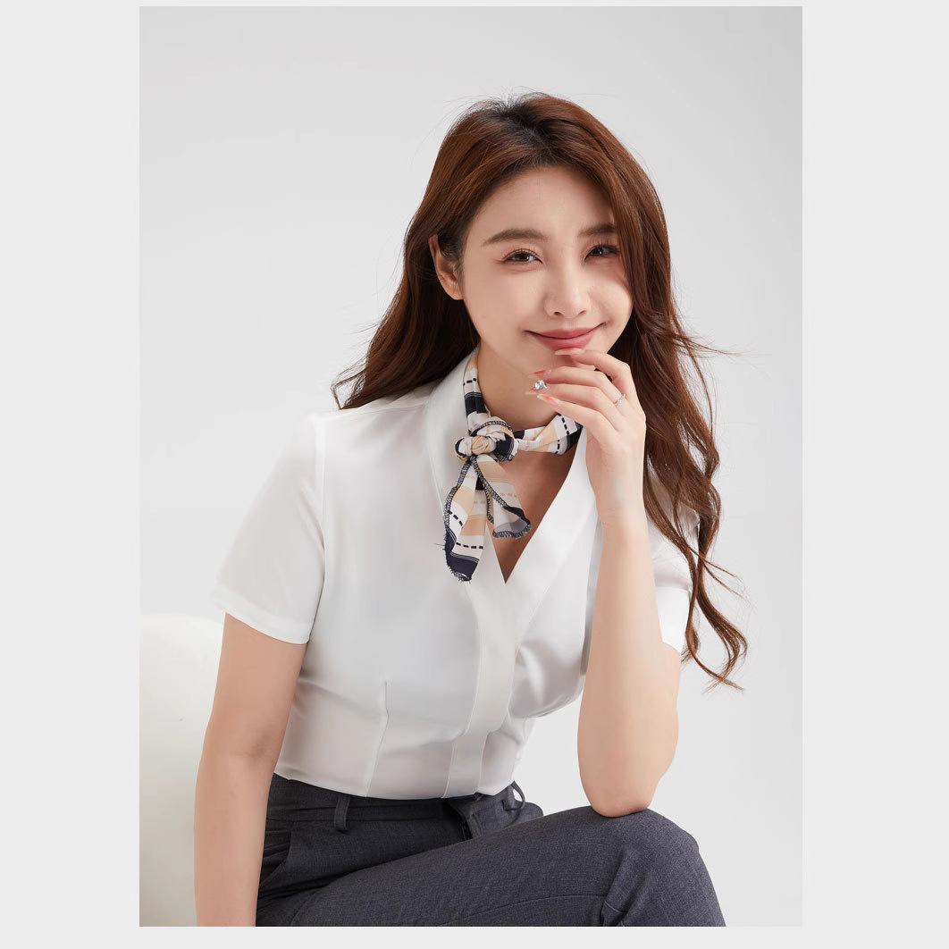 Pramugari wawancara pakaian bisnis wanita kemeja putih China Southern Airlines seragam perhiasan tooling V-neck kemeja pramugari pakaian penerbangan musim panas