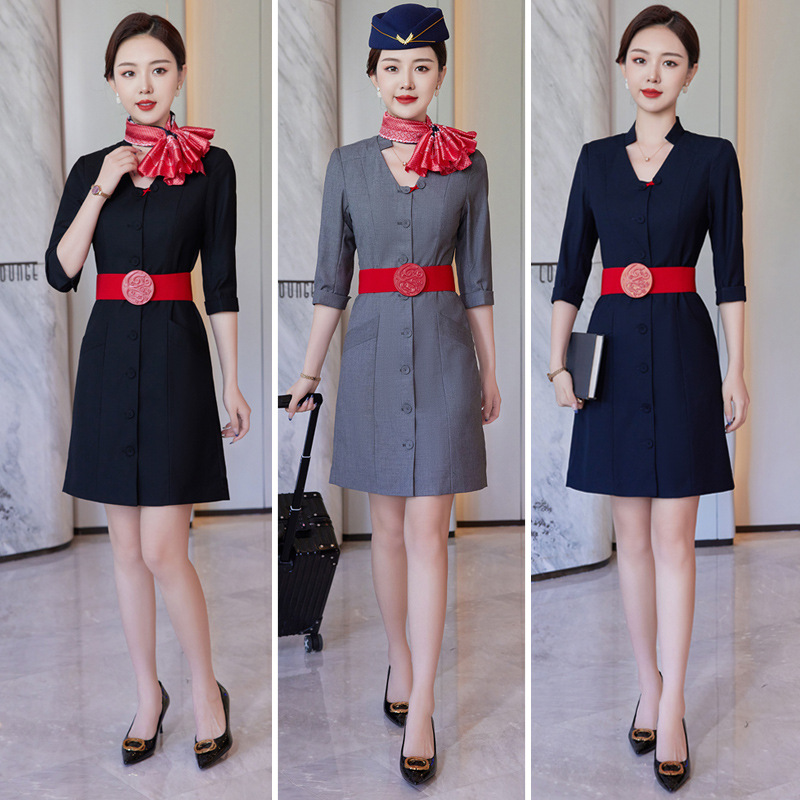 Gaun Profesional Seragam Pramugari China Eastern Eastern Airlines Pakaian Kerja Pramugari Pramugari Kereta Berkecepatan Tinggi Wanita Toko Emas Pakaian Kerja Meja Depan Hotel