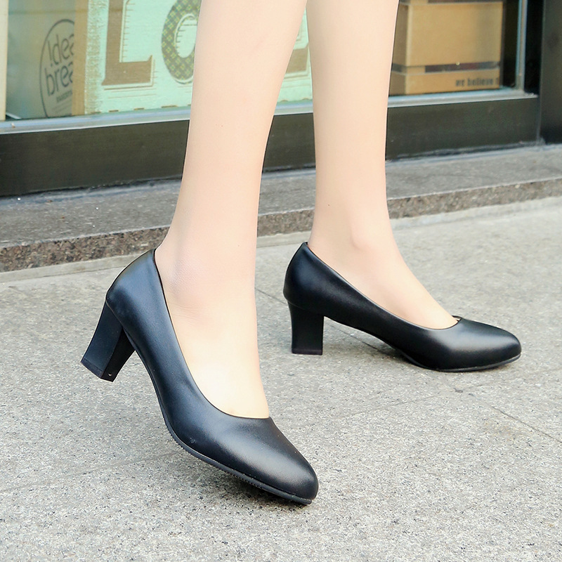 Sepatu Tunggal Kepala Bulat Hak Tinggi Hak Tebal Seragam Kerja Seragam Penerbangan Seragam Seragam Wawancara Pramugari Sepatu Kerja Klasik Hitam untuk Bekerja