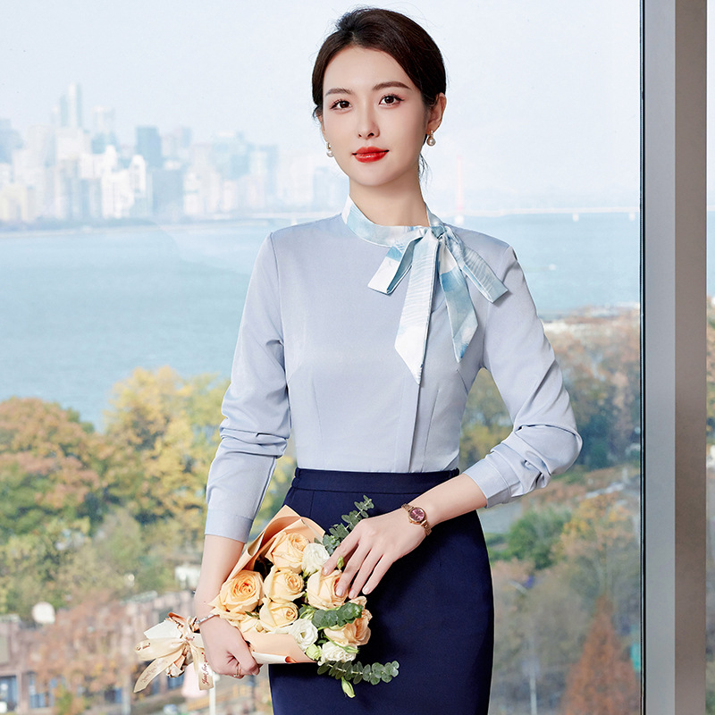 Kemeja seragam kerja siswa Bisnis pramugari bank bunga kerah profesional kemeja bertali bebas dasi kupu-kupu