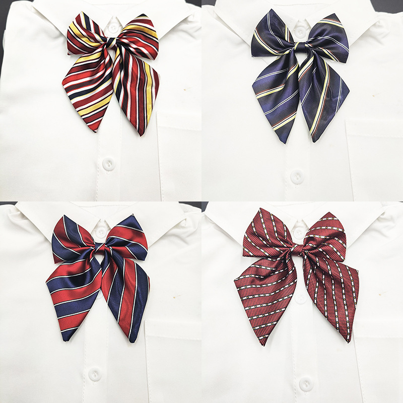 Wanita gaya Korea pakaian bisnis bergaris kerah kotak-kotak bunga dasi kupu-kupu hotel Bank seragam pramugari busur