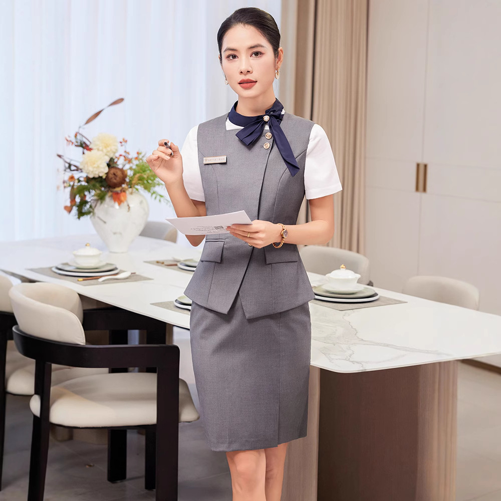 Setelan Rompi Profesional Pramugari Musim Semi dan Musim Panas Pakaian Kerja Meja Depan Hotel Wanita Pakaian Kerja Rompi Rompi Restoran Hotel
