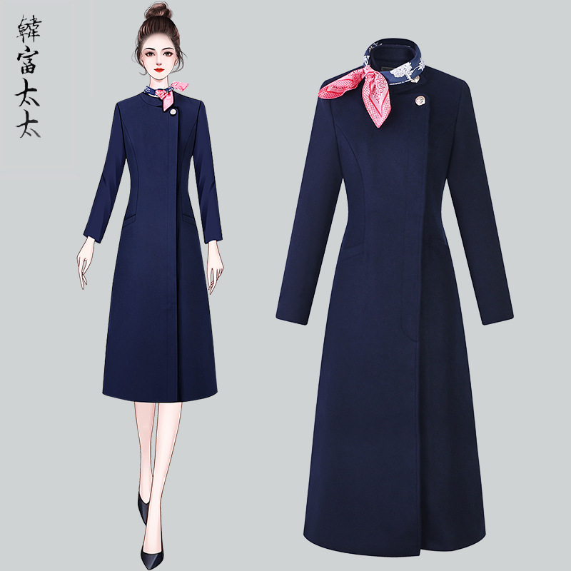 Stewardess pakaian kerja profesional kelas atas meja depan penjualan departemen perkakas mantel wol hangat dipertebal fashion grosir