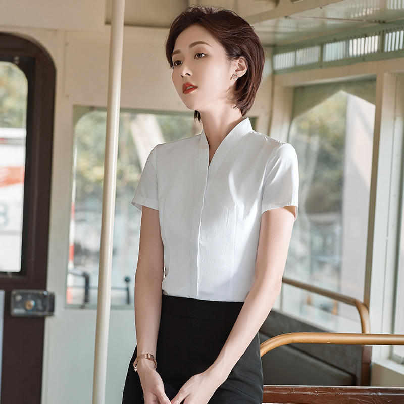 Pramugari wawancara pakaian bisnis wanita kemeja putih China Southern Airlines seragam perhiasan tooling V-neck kemeja pramugari pakaian penerbangan musim panas