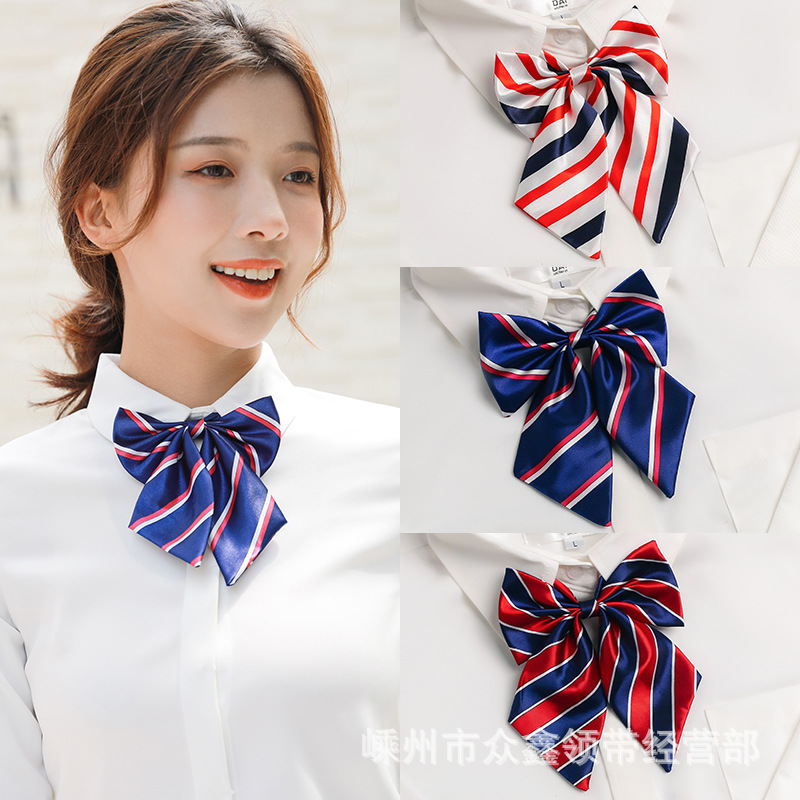 Wanita gaya Korea pakaian bisnis bergaris kerah kotak-kotak bunga dasi kupu-kupu hotel Bank seragam pramugari busur