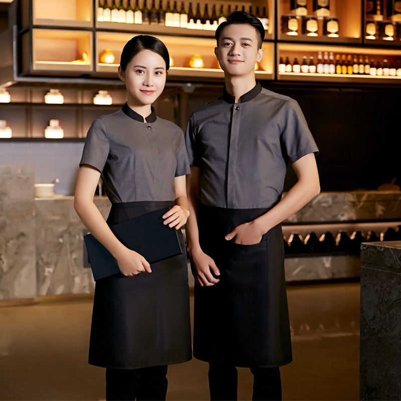 Longlier Hotel Cafe Pelayan Pakaian Kerja Pria Wanita Lengan Pendek Restoran Hot Pot Staf Musim Panas Model Tipis