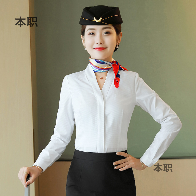 2024 musim semi baru pakaian bisnis kemeja Wanita penerbangan rel berkecepatan tinggi kemeja katun putih wanita V-neck slim fit pakaian kerja hotel