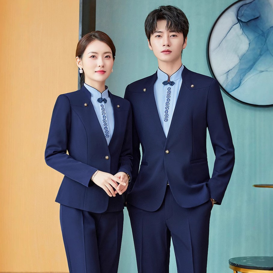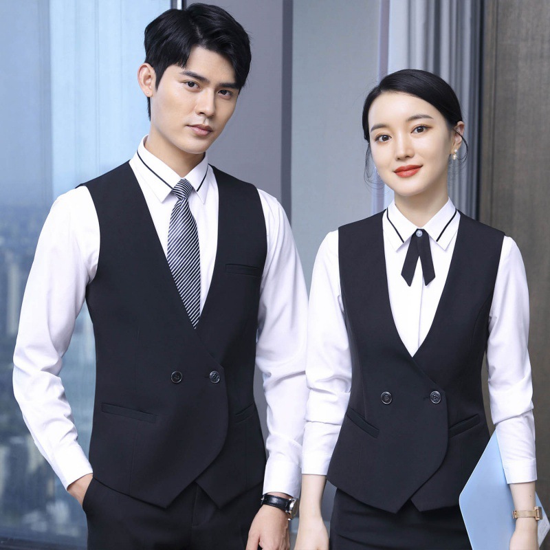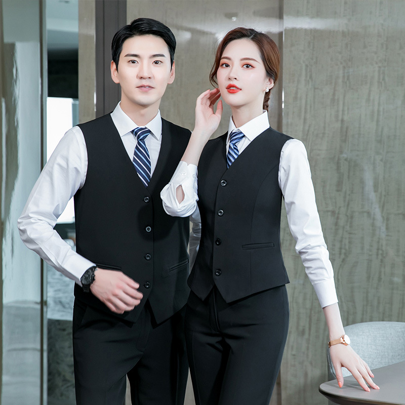Pakaian kerja pelayan Hotel setelan pria dan wanita rompi yang sama ahli kecantikan KTV seragam pramugari meja depan wanita