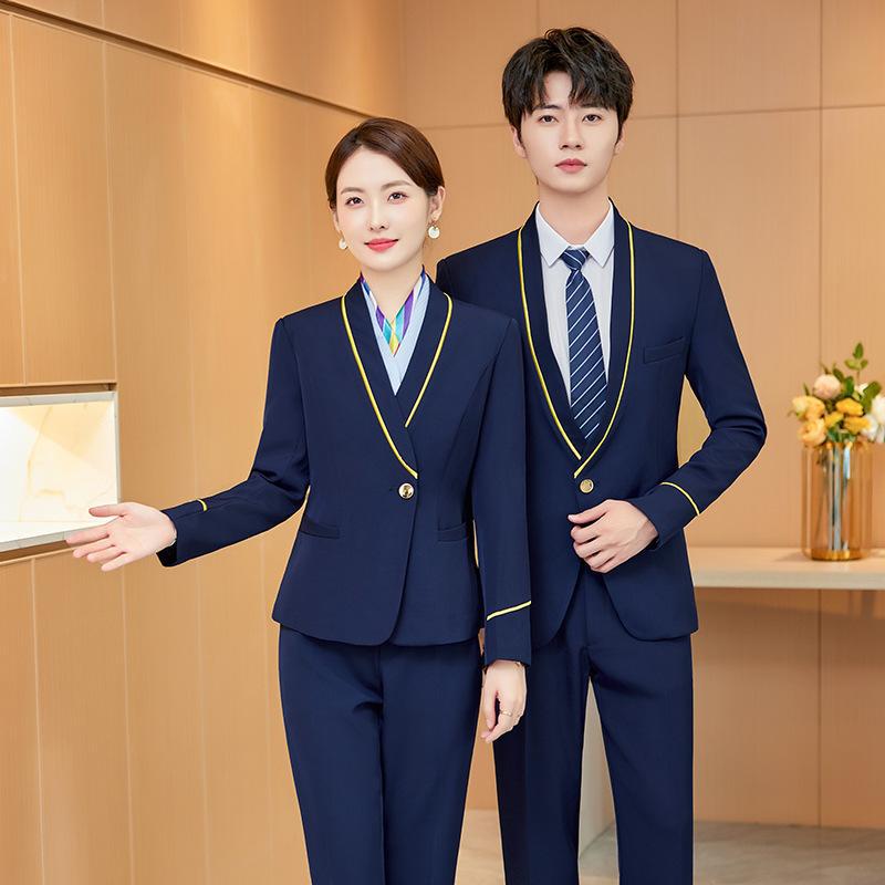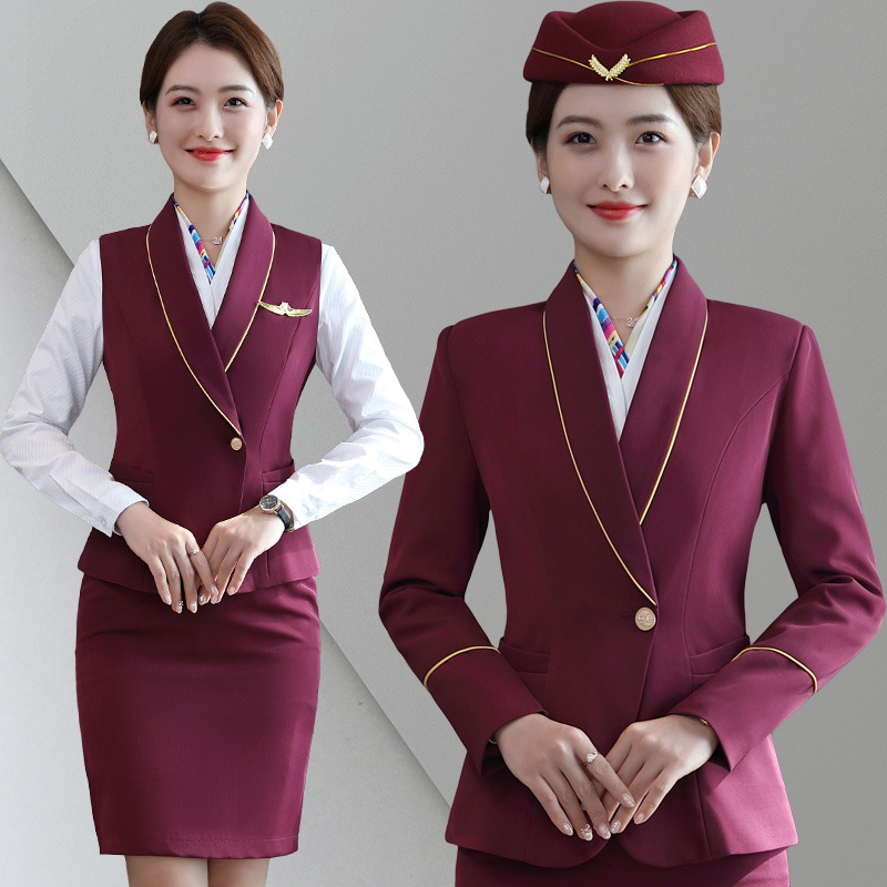 Seragam pramugari setelan profesional wanita, pakaian setelan seragam pramugari 2023 musim gugur dan musim dingin kecantikan hotel meja depan resepsi pakaian kerja selamat datang
