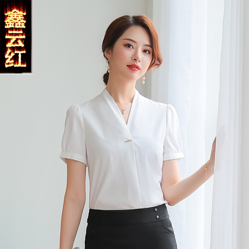 Kemeja Profesional Pakaian Kerja Wanita Kecantikan Lengan Pendek Seragam Pramugari Penerimaan Layanan Pelanggan Meja Depan Pelayan Restoran Hotel