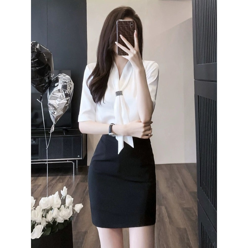 Pakaian Kerja Setelan Pakaian Wanita Elegan Profesional Musim Panas Seragam Pramugari Kemeja Resepsionis Rok Pakaian Kerja Wanita