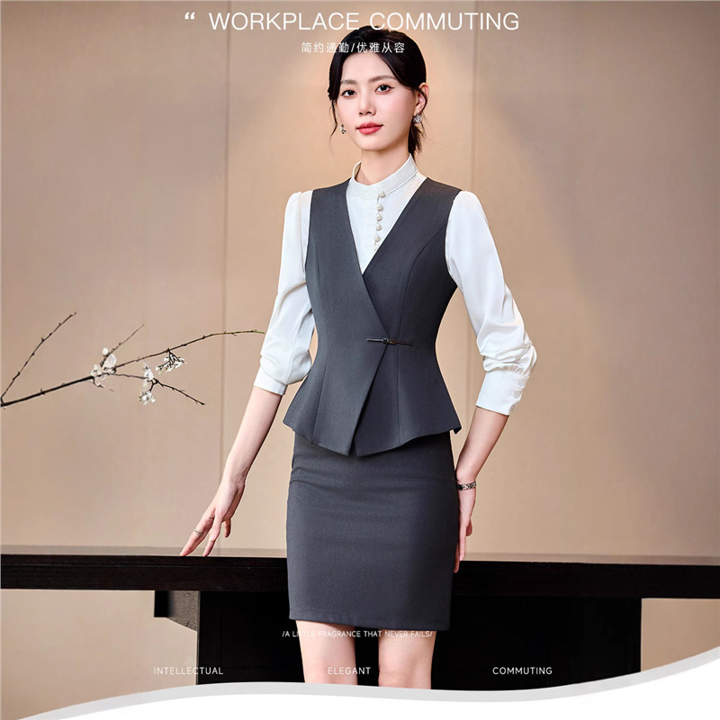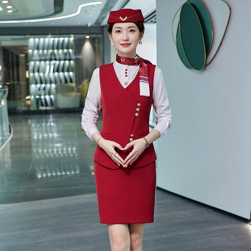 Seragam pramugari hotel meja depan ahli kecantikan pakaian kerja rompi pakaian formal wawancara musim gugur rok setelan wanita profesional
