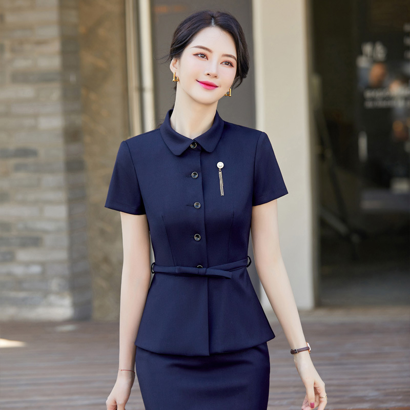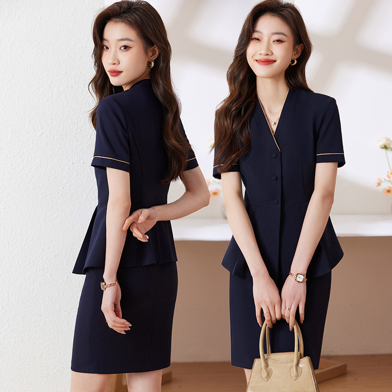 Penerimaan meja depan Hotel profesional setelan musim panas wanita salon kecantikan perhiasan penerimaan pramugari penjualan departemen pakaian kerja setelan