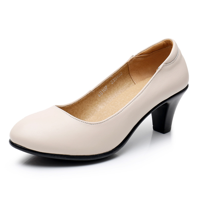 Sepatu kerja fokus untuk lebih dari 30 tahun sepatu kerja kulit asli sepatu kerja hak sedang wanita sepatu profesional sepatu pramugari nyaman ujung bulat sepatu tunggal