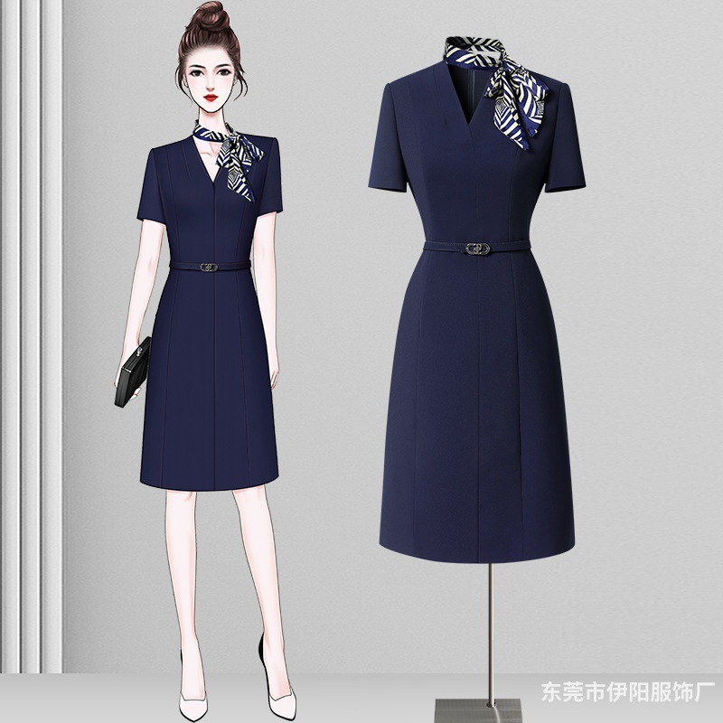 Gaun pakaian bisnis lengan pendek baru musim panas gaun Dalaman temperamen kelas atas departemen penjualan medis kecantikan pakaian kerja rok seragam