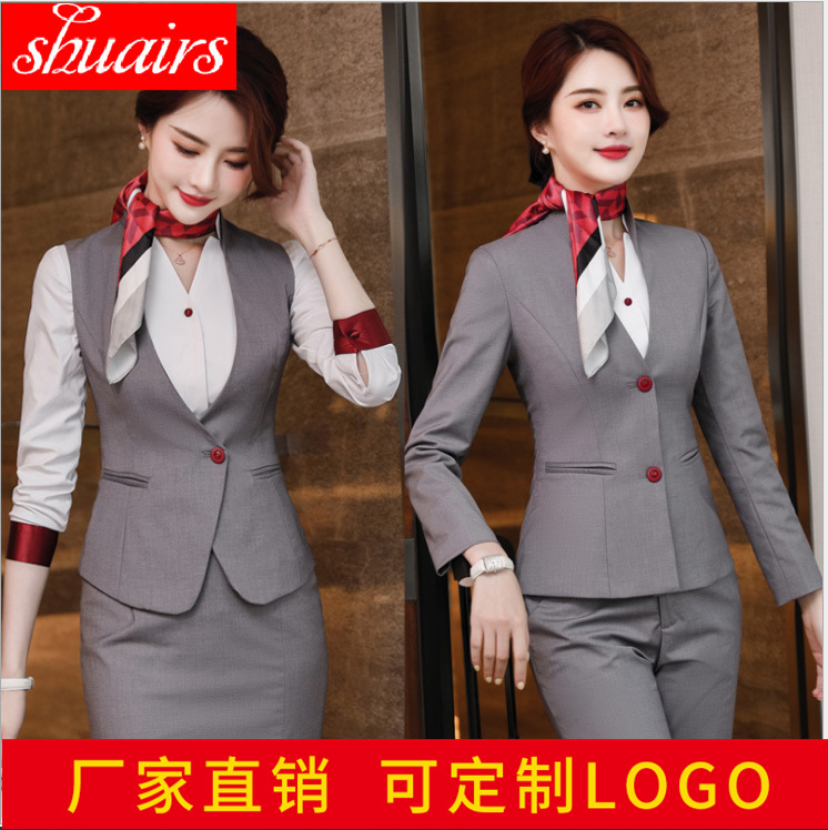 Seragam pramugari rompi wanita setelan hotel etiket pakaian kerja penerbangan rel kecepatan tinggi pakaian kerja penjualan baju kerja kuliah
