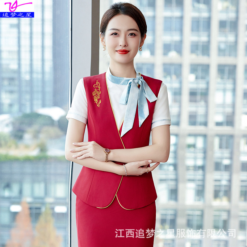 Setelan seragam pramugari mode baru pakaian kerja meja depan hotel rompi profesional setelan wanita Layanan Pelanggan restoran untuk pakaian kerja