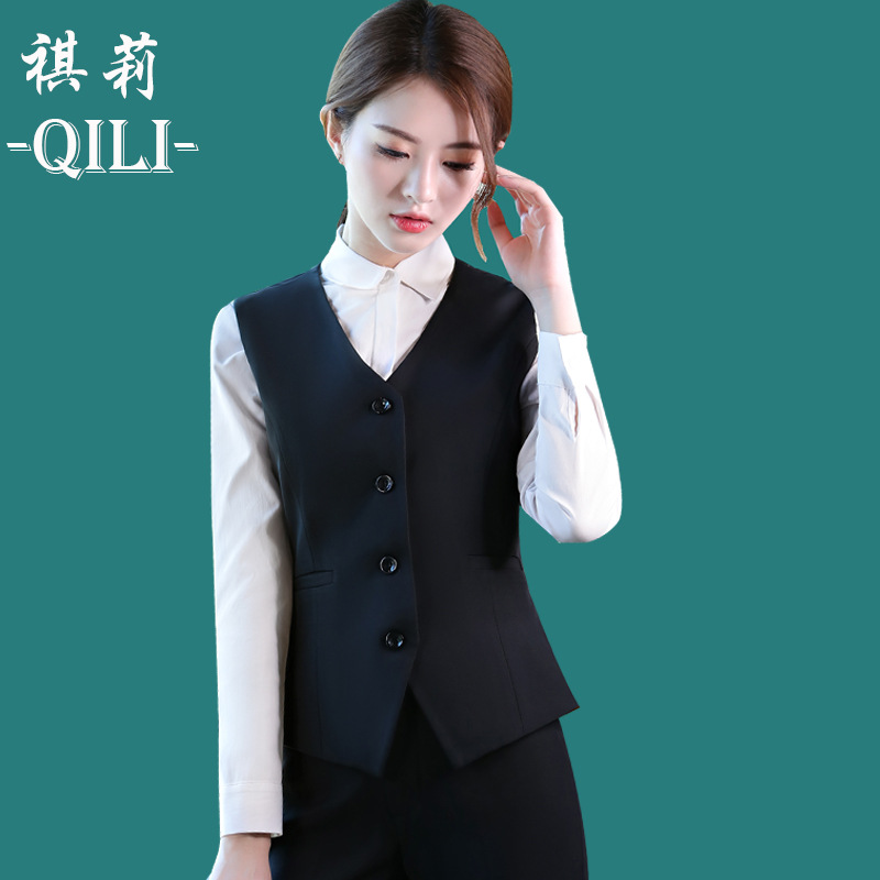 KTV bar rompi meja depan setelan pakaian kerja untuk wanita musim semi musim gugur dan musim dingin baru V-neck rompi seragam pramugari pakaian formal bank
