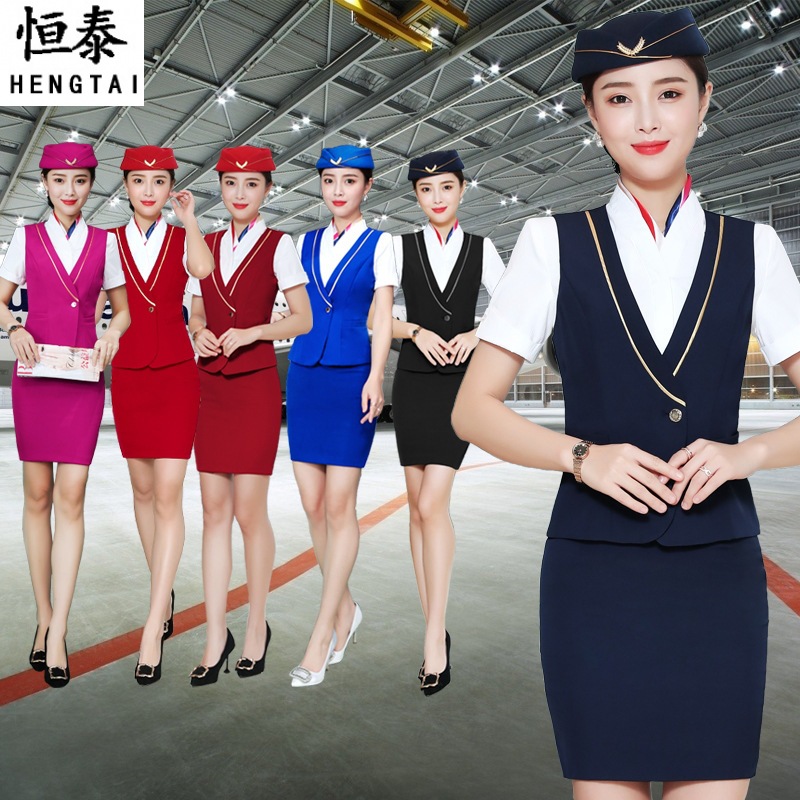 Seragam pramugari setelan profesional wanita penerbangan 2024 musim semi dan musim panas rok rompi Perhiasan hotel meja depan pakaian kerja