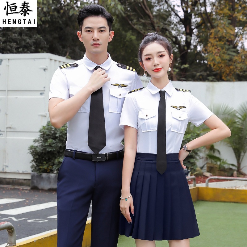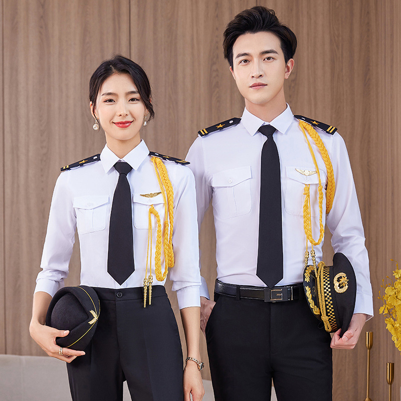 Penerbangan kemeja pilot internasional pramugari penerbangan kemeja seragam pramugari pria dan wanita pakaian bisnis pakaian kerja musim panas
