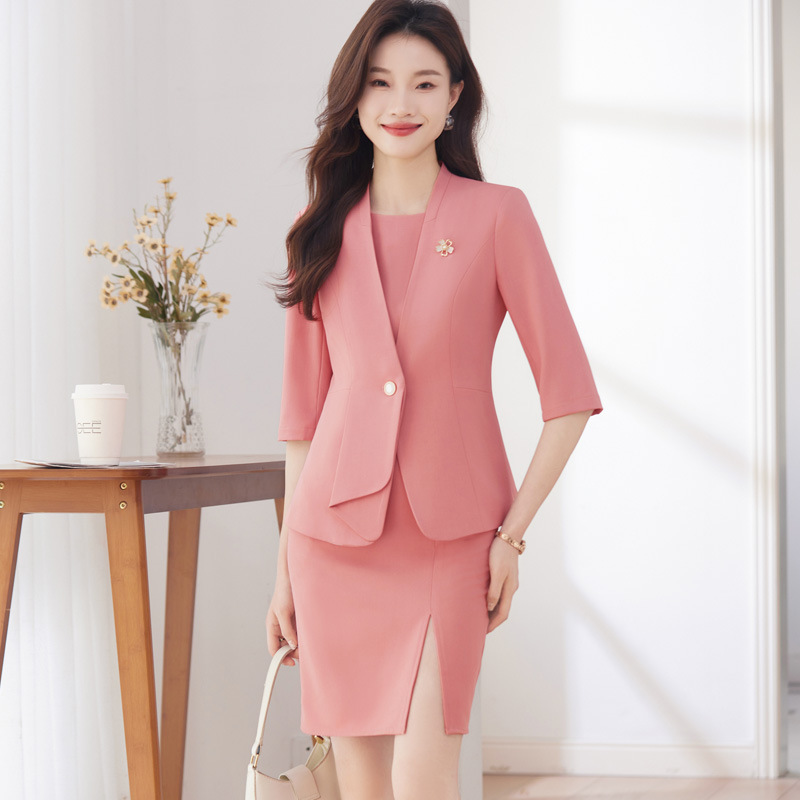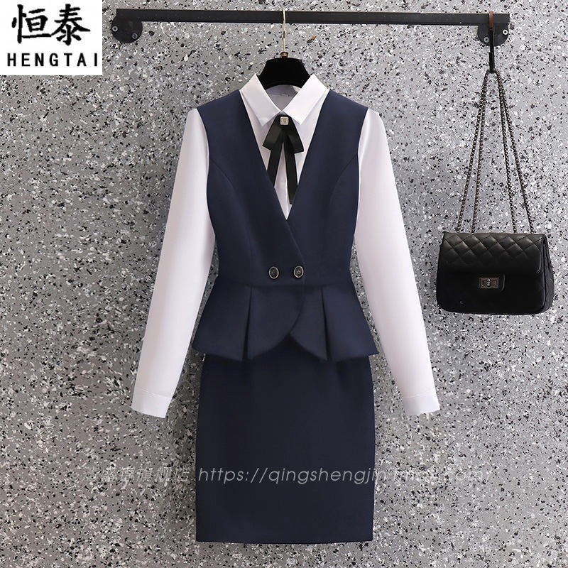 Setelan pakaian kerja wanita musim semi dan musim gugur, pakaian kerja profesional pramugari hotel meja depan salon kecantikan perhiasan toko setelan kerja rok batch