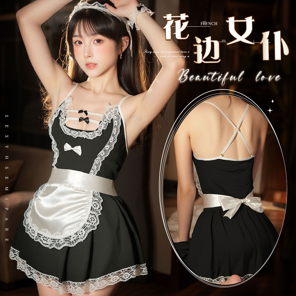 Lingerie seragam seksi, lingerie seragam seksi, setelan pelayan menggoda, main peran, jaring tanpa punggung, pelayan Eropa dan Amerika, 1247 pelayan