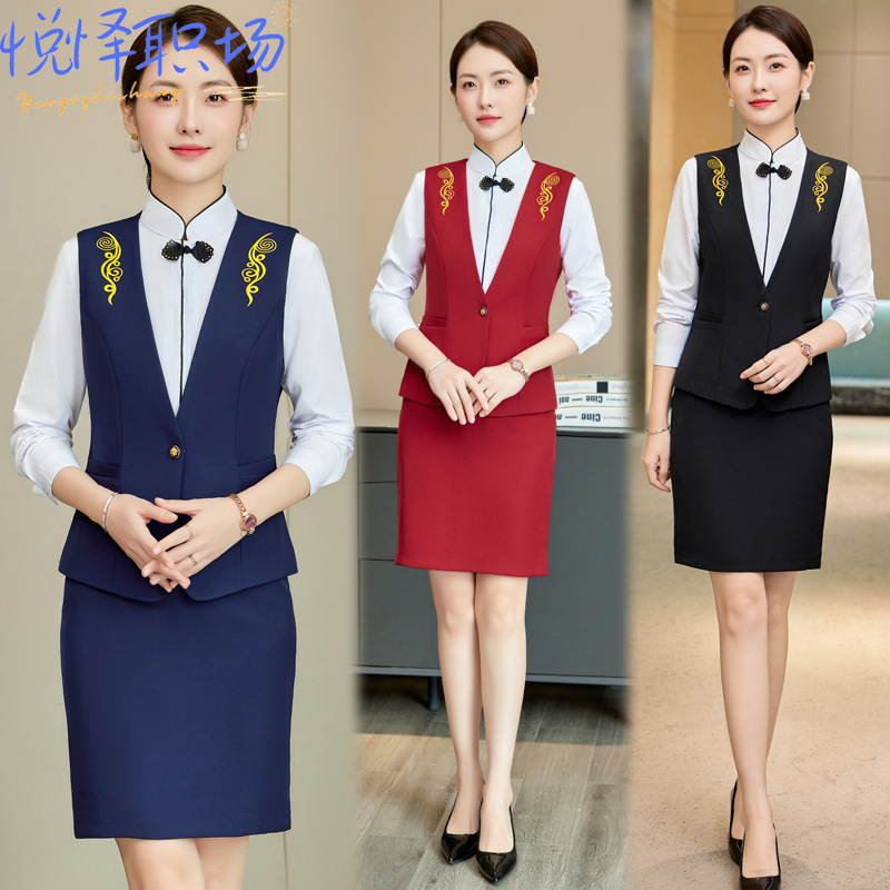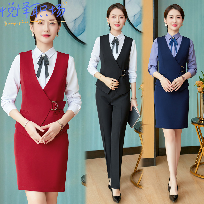 Setelan rok rompi profesional pakaian kerja manajer restoran hotel panduan belanja layanan pelanggan konsultan salon kecantikan pakaian kerja