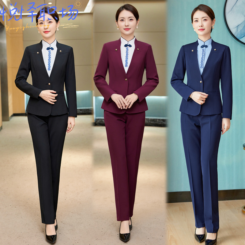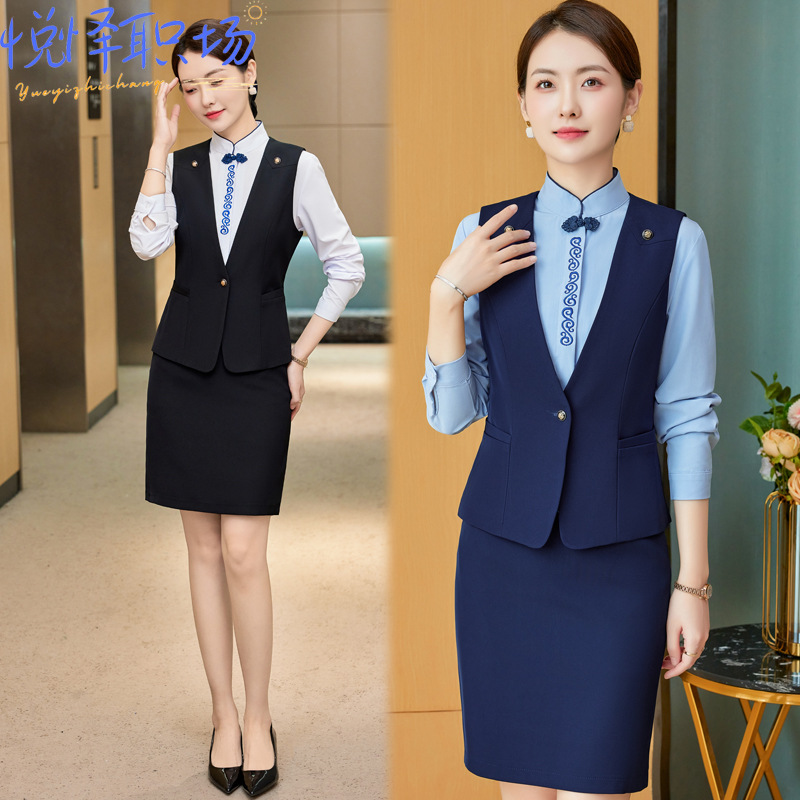 Pakaian bisnis kelas atas depan meja kasir pelayan pakaian kerja wanita temperamen pramugari setelan seragam rumah teh Cina