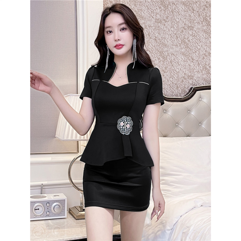 Gaun hitam pakaian bisnis wanita, pakaian musim panas seragam pramugari perempuan pakaian kerja salon kecantikan lintas batas 261
