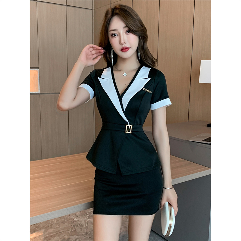 Setelan profesional pakaian formal OL elegan musim panas wanita pakaian kerja meja depan hotel rok seragam pramugari toko perhiasan
