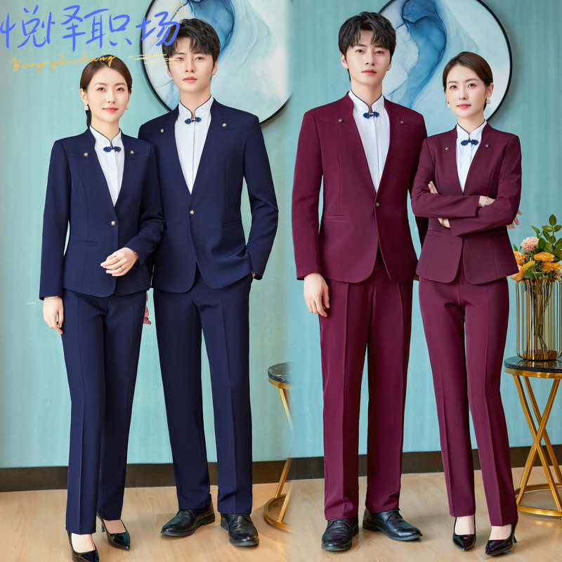 Pakaian kerja pelayan restoran, kelas atas hotel meja depan pakaian kerja wanita musim gugur dan musim dingin pelayan restoran pakaian kerja setelan bisnis