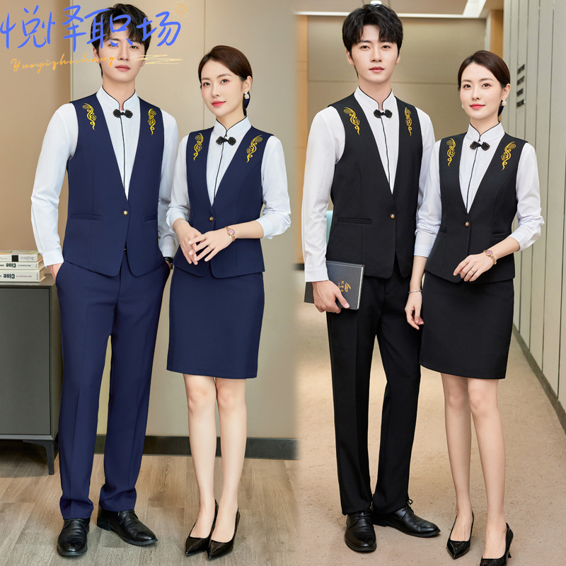 Baju kerja pelayan restoran, baju rompi profesional, pakaian kerja pelayan restoran, baju kerja resepsi meja depan, gaya China