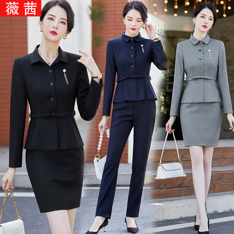 Setelan pakaian profesional kelas atas musim gugur dan musim dingin baru pakaian kerja akademi kecantikan perhiasan hotel meja depan pakaian formal seragam pramugari