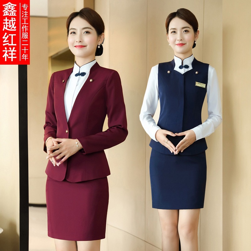 Seragam pramugari hotel meja depan ahli kecantikan pakaian kerja rompi pakaian formal wawancara musim gugur rok setelan wanita profesional