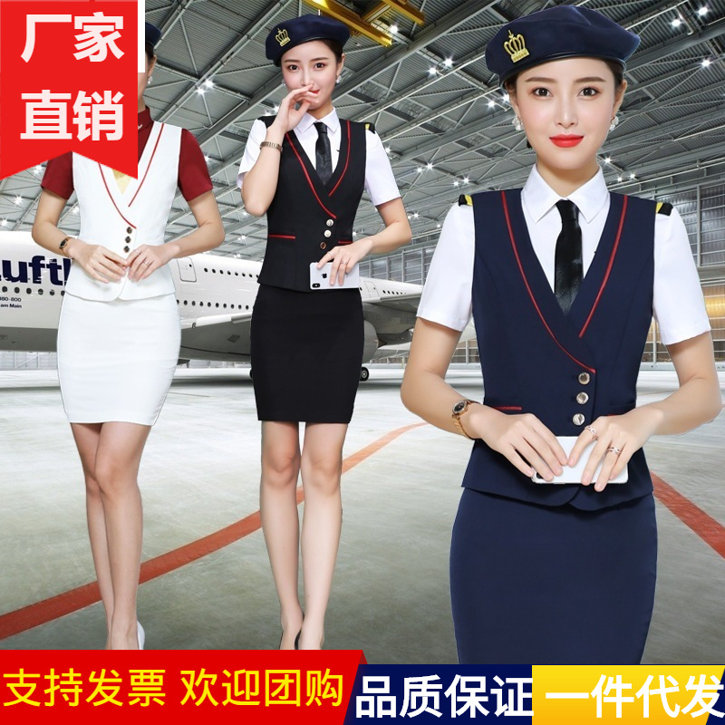 Seragam pramugari setelan profesional rompi wanita setelan rok penerbangan kuliah seni pakaian sekolah hotel meja depan penerimaan pakaian kerja