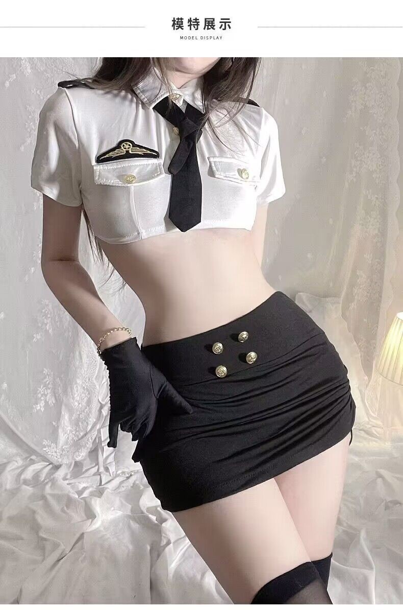 Lingerie seksi grosir rok pendek ketat menggoda terbuka pinggang seksi pakaian bisnis polisi wanita seragam pramugari setelan Sao