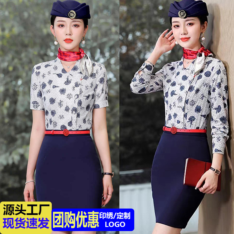 Setelan profesional wanita temperamen hotel depan meja kemeja kerja rok penjualan departemen kecantikan salon pakaian kerja seragam pramugari
