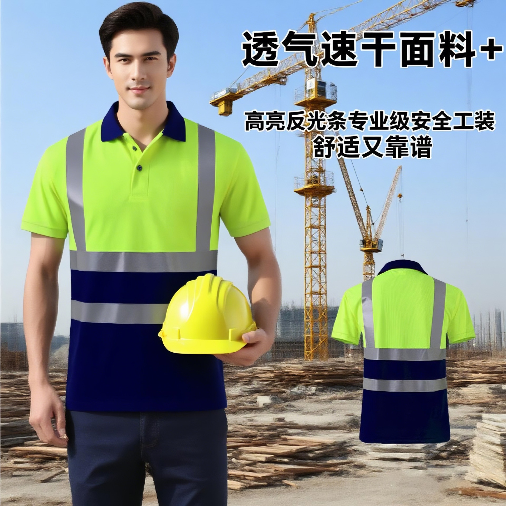 Kemeja kerja reflektif cepat kering, kerah lintas batas, kemeja polo reflektif cepat kering, situs konstruksi jalan sanitasi luar ruangan, pakaian kerja pelindung tenaga kerja