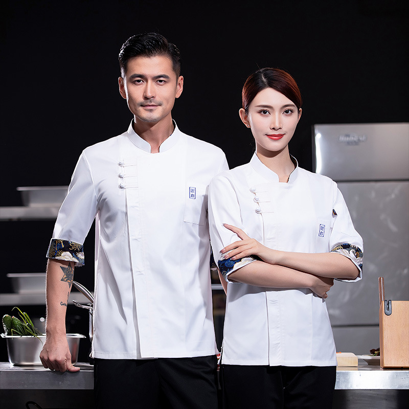 Pakaian kerja koki musim gugur dan musim dingin pakaian kerja dapur pria kantin katering restoran ukuran besar pakaian koki lengan pendek profesional