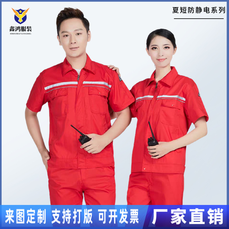 Setelan baju kerja anti statis, setelan baju pelindung, anti statis, lengan pendek, pakaian Tenaga Kerja sinnato, perbaikan otomatis, logo cetak binding, baju kerja tetap