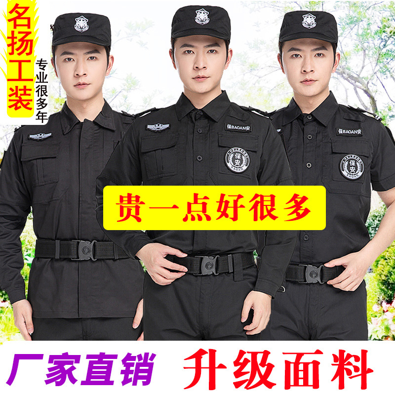 Pakaian kerja keamanan Musim Semi dan Musim Gugur setelan pria lengan panjang penuh set properti penjaga pakaian keamanan kain katun tinggi hitam pakaian latihan pertempuran