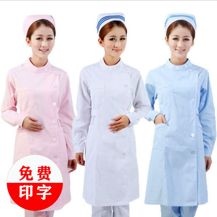 Pakaian perawat kerah berdiri, baju salon kecantikan, baju terusan kerah berdiri, lengan panjang, gaun putih ramping tanpa bahu, pakaian perawat musim dingin