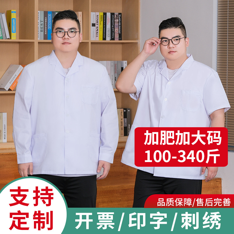Gaun putih ukuran besar pakaian dokter 100.00 kg-150.00 kg ukuran besar pria lengan pendek lengan pendek