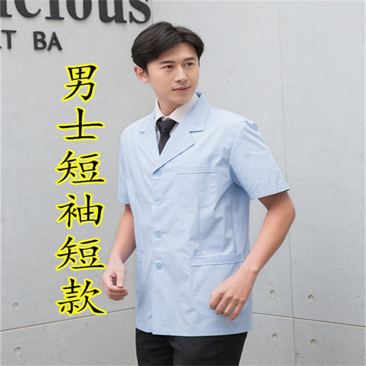 Gaun putih lengan panjang dokter, pakaian kerja staf medis rumah sakit pria dan wanita laboratorium musim panas lengan pendek