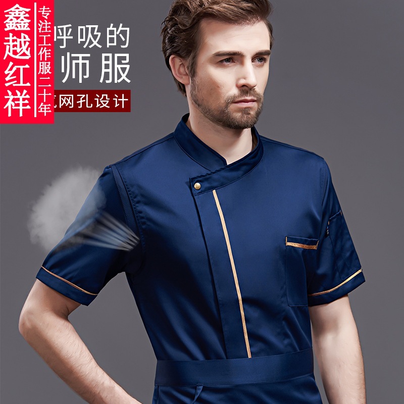 Grosir pakaian koki tiga kancing paralel pakaian kerja dapur hotel pakaian kerja koki musim panas tipis