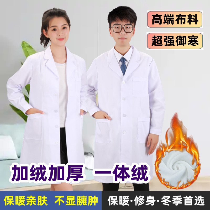 Mantel Putih Beludru Satu Tubuh Pakaian Kerja Pria Wanita Ekstra Tebal Tetap Hangat Musim Dingin Mantel Putih Dokter Lengan Panjang Rumah Sakit Apotek